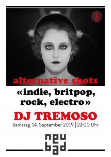 Sa. 14. September 2019 - 22:00 Konzert Disko «Lonely girls and boys, put on your dancing shoes and dance with somebody 10.15 on a saturday night!» Tanzt mit Tremoso Duvoisin zu Indie-, Britpop-, Alternative und Electroklängen! Ort: Keller Eintritt: 15.- Veranstalter Tremoso Duvoisin