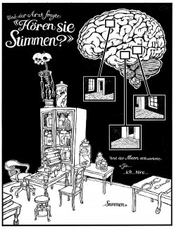 Die Idee Bilder mit Musik zu verknüpfen, diese zwei Elemente in einander verfliessen zu lassen hat den Musiker Niklaus Hürny seit jeher fasziniert. Das Comic »Hören sie Stimmen« von Andy Fischli bietet sich formell, inhaltlich und grafisch wunderbar an, musikalisch umgarnt zu werden und zum audiovisuellen Erlebnis zu werden. Loops, Samples und verträumte Melodien werden die Bilder aufleben lassen. Die vier Musiker Fabian M. Mueller (Piano) Martin Baumgartner (Elektronik, Grafik) Martina Berther (Bass) und Niklaus Hürny (Trompete, Elektronik) geben dem Gefühl ihre Stimme.