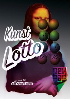 Im Gegensatz zu einer Kunst-Auktion an der Werke an die meistbietenden Personen gehen, kommt man beim Kunst-Lotto nur mit Glück in Besitz eines Originals. Es sind Werke von u.a. folgenden Künstlern zu gewinnen: a&a - Lukas Acton - Daniel Amhof - Christian Aregger - Jürgen Beck - Irene Bisang - Patrick Blank - Black Smoke Medicine Show - Brain Tilt - Brother Pantichrist - Roland Bucher - Regula Bühler - Brigitte Dätwyler - Severin Egli - Hans Erni - Tatjana Erpen - Romuald Etter - Laura Ferrara - Christoph Fischer - Christina Frey - Dashenka Fromherz - Michael Greppi - Anna Hilti - Hubert Hoffmann - Vanja Hutter - Michelle Kohler - Jadwiga Kowalska - Ralph Kühne - Isabelle Kurmann - laborluzern.org - Maude Léonard-Contant - Reto Leuthold - Esther Leupi - Judith Leupi - Marie Catherine Lienert - Paul Lipp - Karin Lustenberger - Andres Lutz - Pirmin Meyer - Timo Müller - Raphael Muntwyler - Carla Neis - Benedikt Notter - Tobias Oehmichen - Sabina Oehninger - Camillo Paravicini - Lisa Phol - Luca Pitsch - Thomas Probst - Rast.Beck - Enna Salis - Hans Schärer - Corina Schwingruber - Diana Seeholzer - Andy Storchenegger - Soland / Aregger / Stofer - Nina Steinemann - Rahel Steiner - Daniel Wehrlin - Katharina Anna Wieser - Attila Wittmer und Anita Zumbühl.