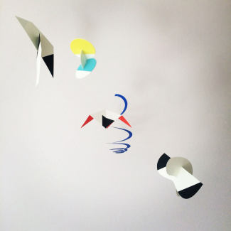 Bewegt vom unsichtbaren H. Auch flirten, sinnieren, spielen, schweifen, schmollen, schweigen oder tanzen sie - Les Amis de la Danse. Eckstein, Ping, Musch, Kringel, Broodl. Fünf eigensinnige Papierfiguren, die als Mobile in der Luft schweben. Eckstein hat gerne den Überblick, doch verdreht ihm eine Seifenblase den Kopf, Ping spricht auf den Punkt gebrachten Unsinn, Musch zieht alle Blicke auf sich und ist in der Nacht äusserst geräuschsensibel, Kringel ist eine Fantastin, die gerne saust, bis schwarze Punkte zu Boden rieseln und Broodl plaudert in Wiener Dialekt und mag den süssen Müssigang.