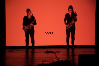 Insbesondere die visuelle Wahrnehmung, das Ambiente und der Einbezug transdisziplinärer Medien sind für die beiden jungen Saxophonistinnen wichtige Stichworte und verlangen viel Aufmerksamkeit. Vermehrt setzt sich das Duo mit Performancestücken auseinander und zeigt sich mit Licht- und Videostücken.