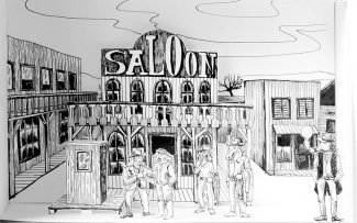 The Long Way To Adamstown...Das Trio um Verena Braun singt, liest, spielt und dazu werden die Zeichnungen aus Adamstown projiziert. Ein Western der genüsslichen Art, für alle Tramper, Cowgirls, Grünhörner und Comic-Fans.