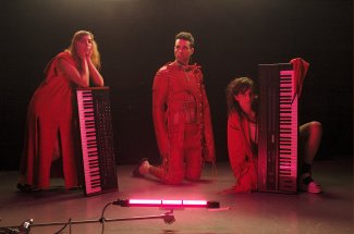 Auch wenn der Name es nicht vermuten lässt, Doomsquad aus Kanada touren durch Europa um ihre lebensbejahende Botschaft in tanzbarster Weise zu verbreiten und machen dabei Halt im Neubadkeller. «Let yourself be seen» heisst das Album der drei kanadischen Geschwister Jaclyn, Trevor und Allie Blumas, die 2010 unter dem martialischen Namen anfingen gemeinsam aufzutreten und genau das möchte die Band dem Publikum ans Herz legen. Doomsquad behandelt nämlich in ihrer Tanzmusik - eine wilde Mischung aus Acid House, West African Disco, Spiritual Jazz, NYC No-Wave und weiteren Tanzbarkeiten - durchaus ernsthafte Themen. Gegen die schrille Hetze populistischer Akteure setzen die Kanadier eine Botschaft des gegenseitigen Respekts und des Wert eines jedes Einzelnden entgegen. Jede und Jeder schillert unter seiner und ihrer eigenen Diskokugel im Herzen und Doomsquad hat den passenden Soundtrack dafür parat.
