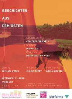 Das diesjährige Frühjahrskonzert führt das Campus Orchester über Osteuropa nach Russland. In der «Moldau» verfolgt Smetana den Weg des Flusses durch Wälder und weite Landschaften hinweg. Im russischen Märchen «Peter und der Wolf» lässt Prokofjew die Instrumente des Orchesters in die Rolle von Menschen und Tieren schlüpfen. In seinem «Cellokonzert Nr. 1» stellt Schostakowitsch dem Solo-Cello das Horn zur Seite, das in Prokofjews musikalischem Märchen den Wolf verkörpert und in der Orchestrierungslehre als Symbol für die Natur gilt.